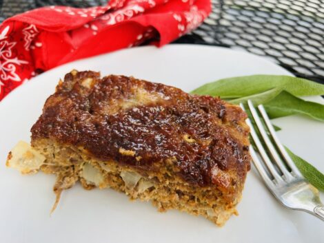 On weekdays, Carolyn offers specials that she makes from scratch. She says that people particularly like Iowa Buffet’s Sweet Bourbon Glazed Meatloaf, which she makes from five pounds of ground beef, and/or a mixture of ground turkey and salsiccia. Carolyn warns that she never measures and that she adjusts ingredients to what she has on hand. She created a Sweet Bourbon Glaze recipe for Sweet Leisure, but we interpreted the meatloaf recipe from her instructions, cutting her recipe from five to two pounds and adding guessed-at measurements. Of course, this is a super flexible recipe just waiting for cooks to adjust. Thank you, Carolyn. Love it!
